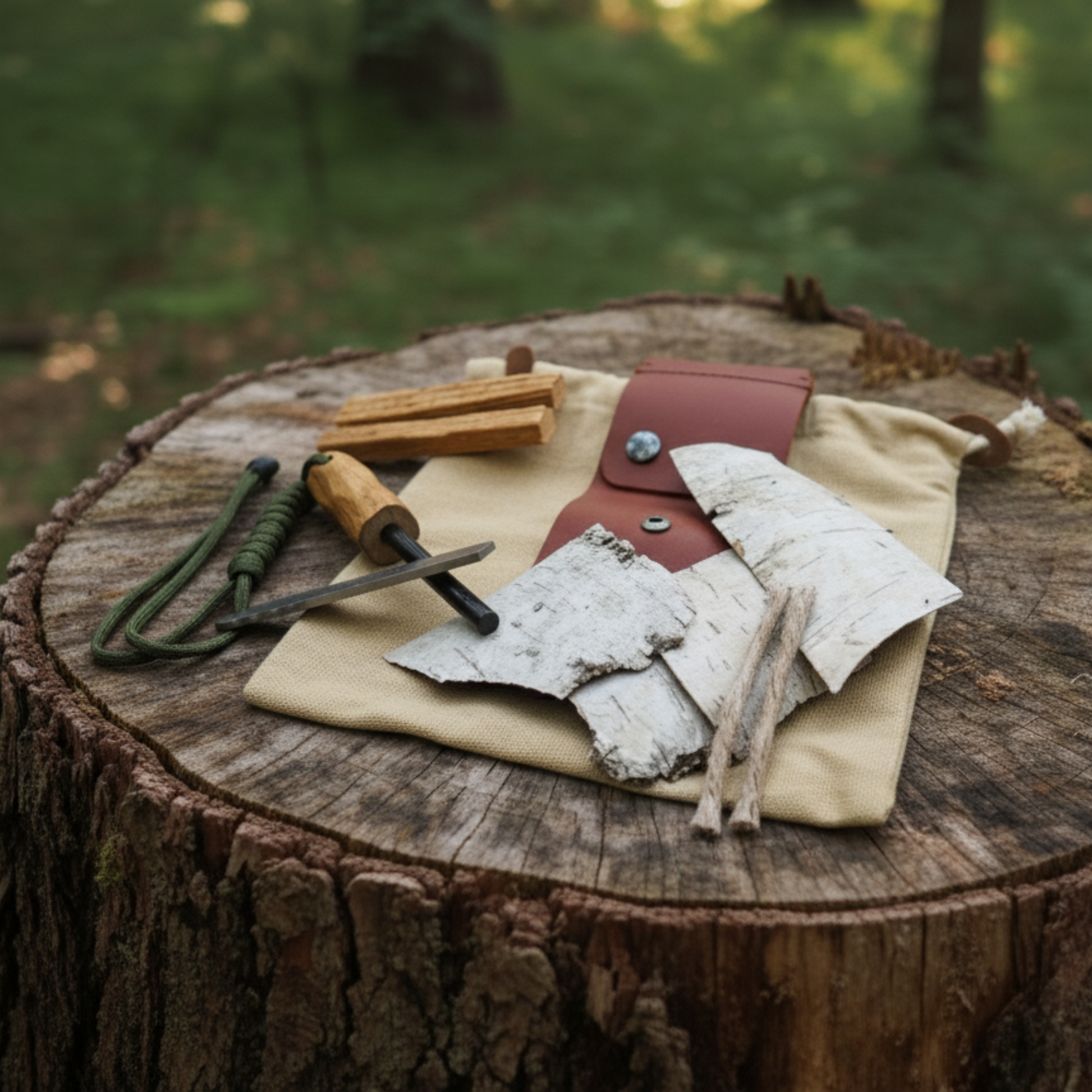 Dieses praktische Feuerstarter-Set enthält alles, was du brauchst, um auch bei Wind und Wetter zuverlässig Feuer zu entfachen – ob beim Bushcraften, Campen oder für die Notfallausrüstung.