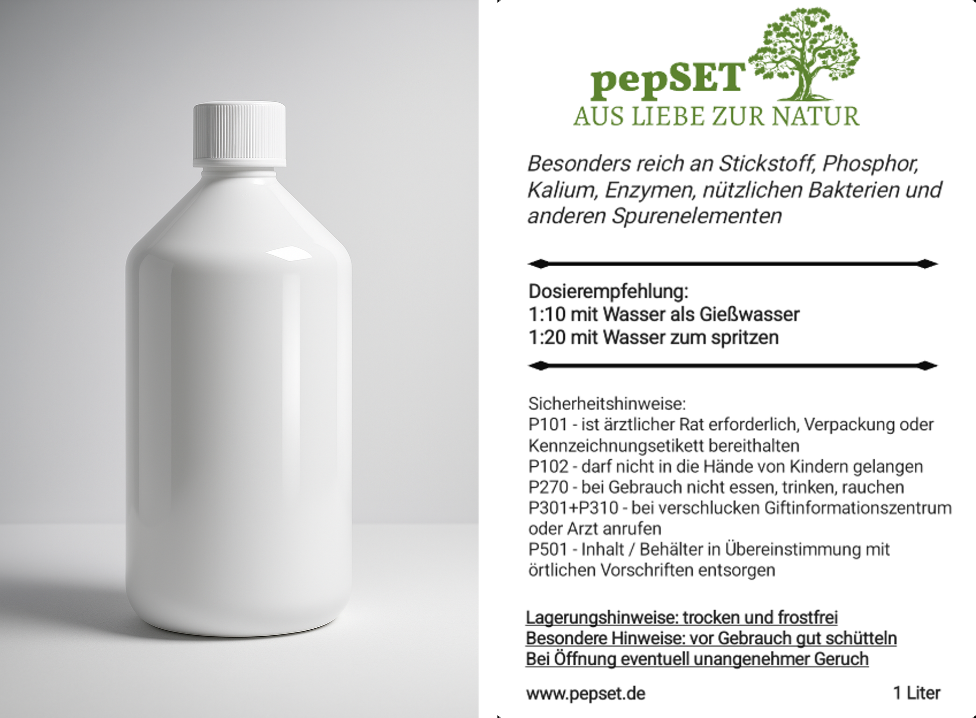 - Natürliche Anteile von Stickstoff, Phosphor, Kalium, Enzymen, nützlichen Bakterien & Spurenelementen